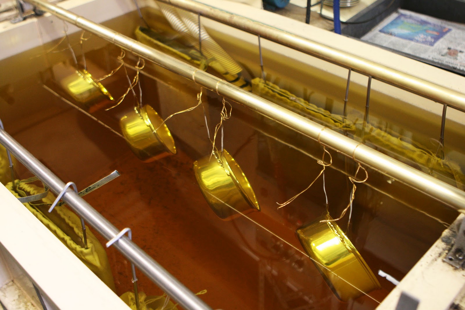 Une autre technique est le thermolaquage liquide qui se base sur le même principe mais en liquide. L’avantage est une surface lisse et égale au contraire du poudré qui peut donner un aspect peau d’orange. Nous utilisons le thermolaquage liquide pour nos plaques en laiton.